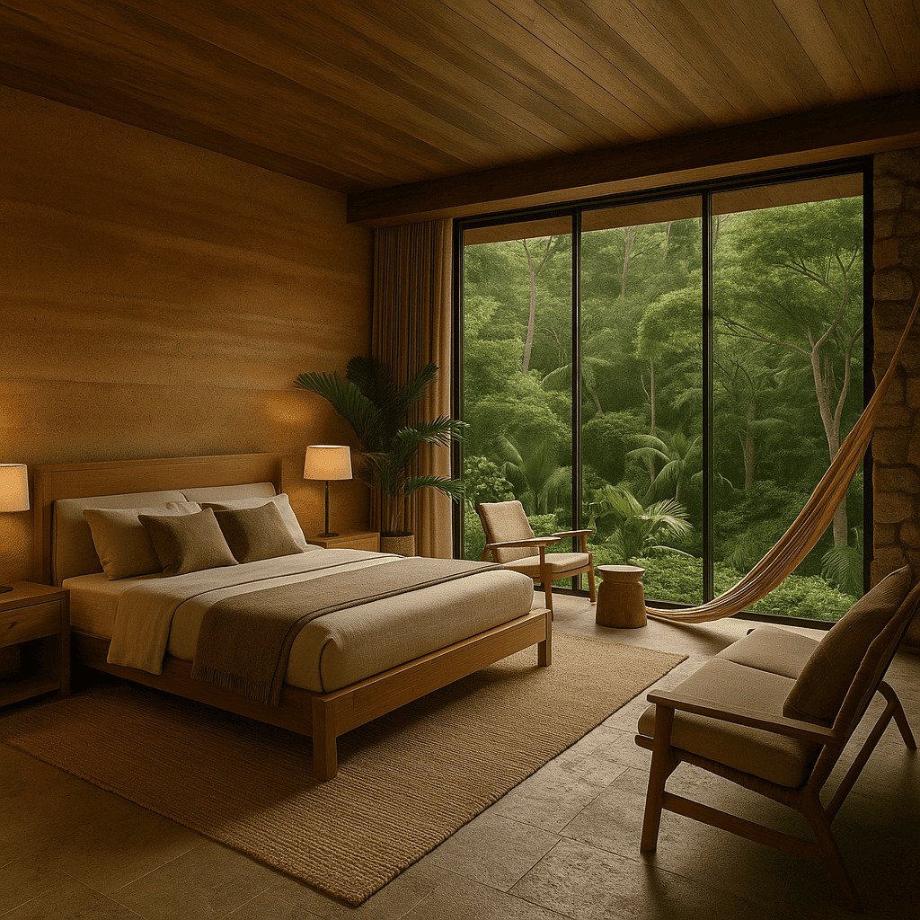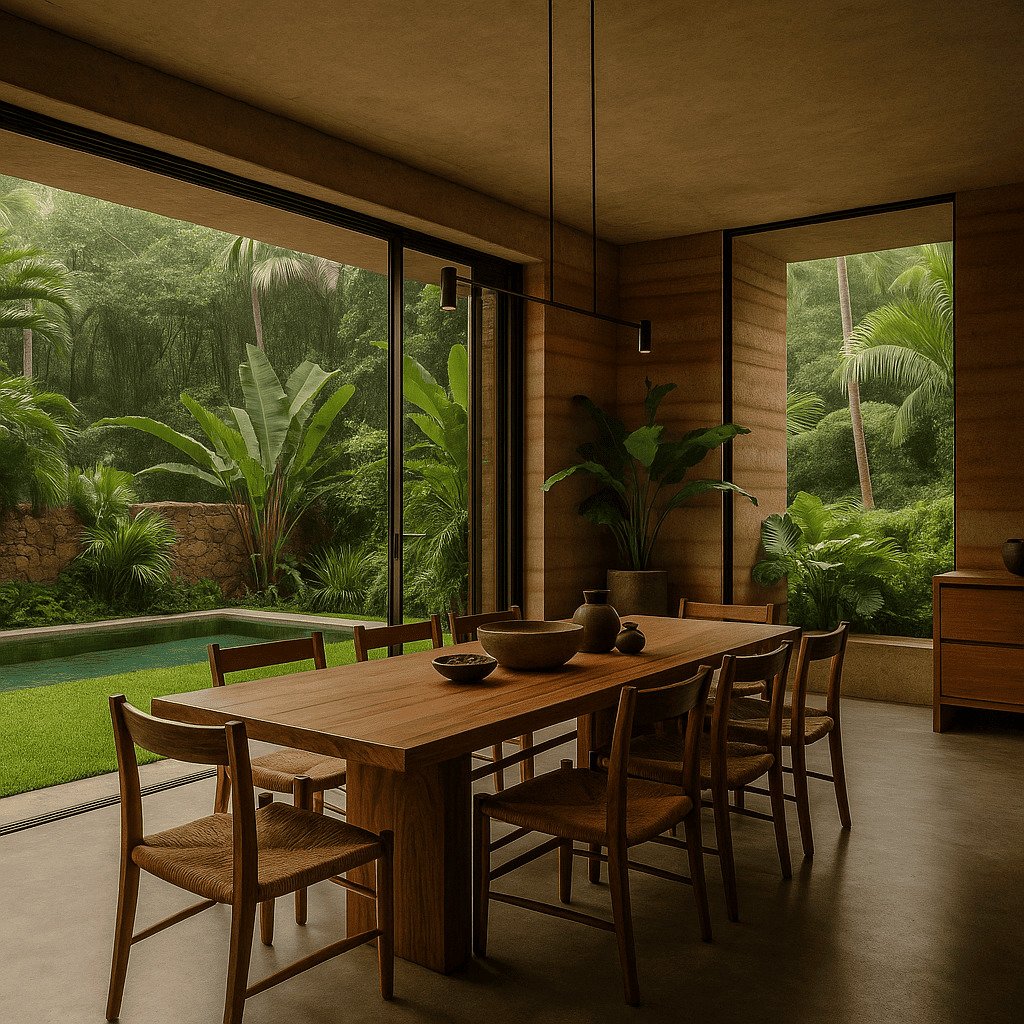 Born from the desire to reconnect design with the natural and ancestral, the project proposes a return to origin: building spaces that coexist with their environment instead of dominating it.